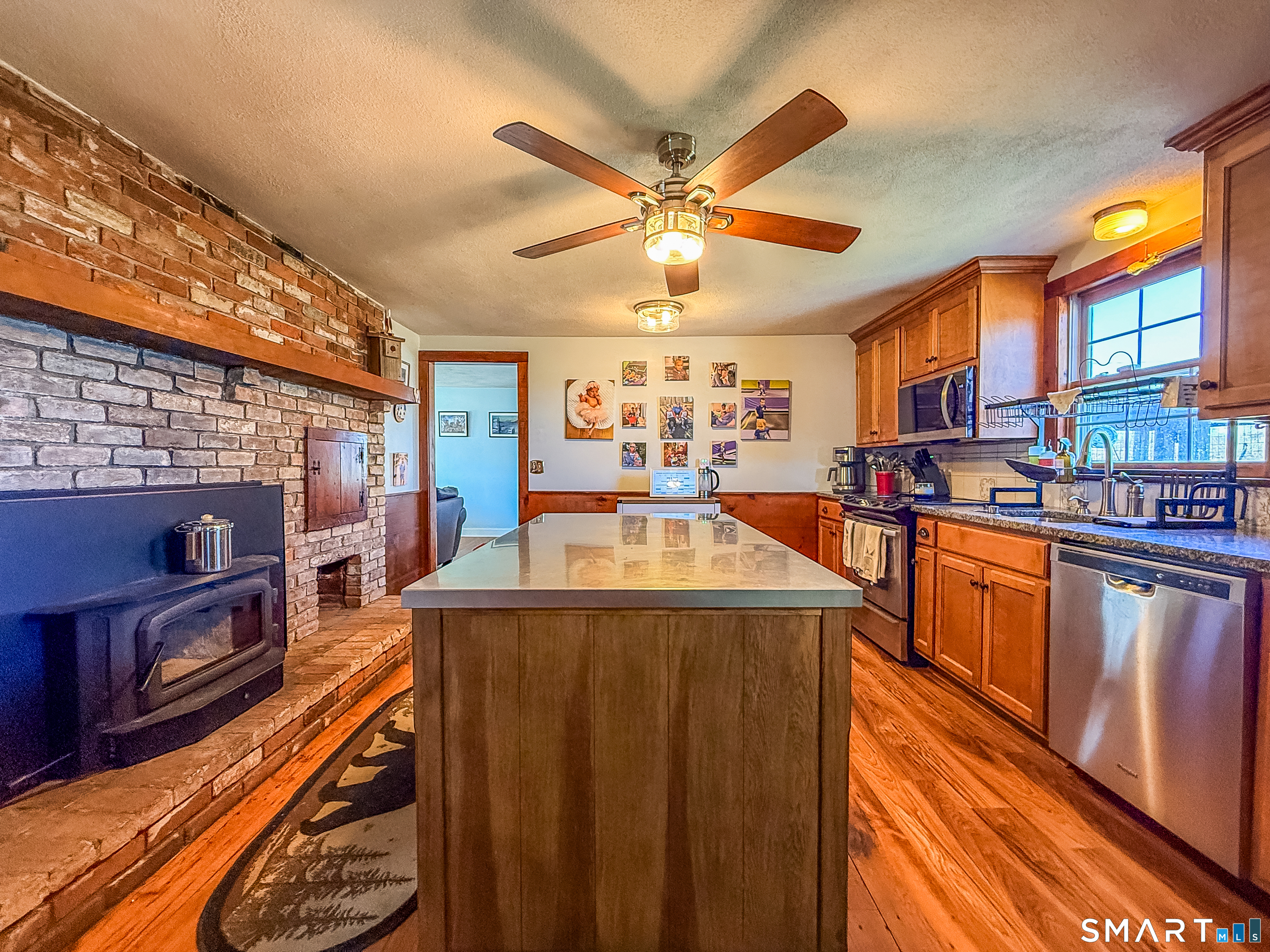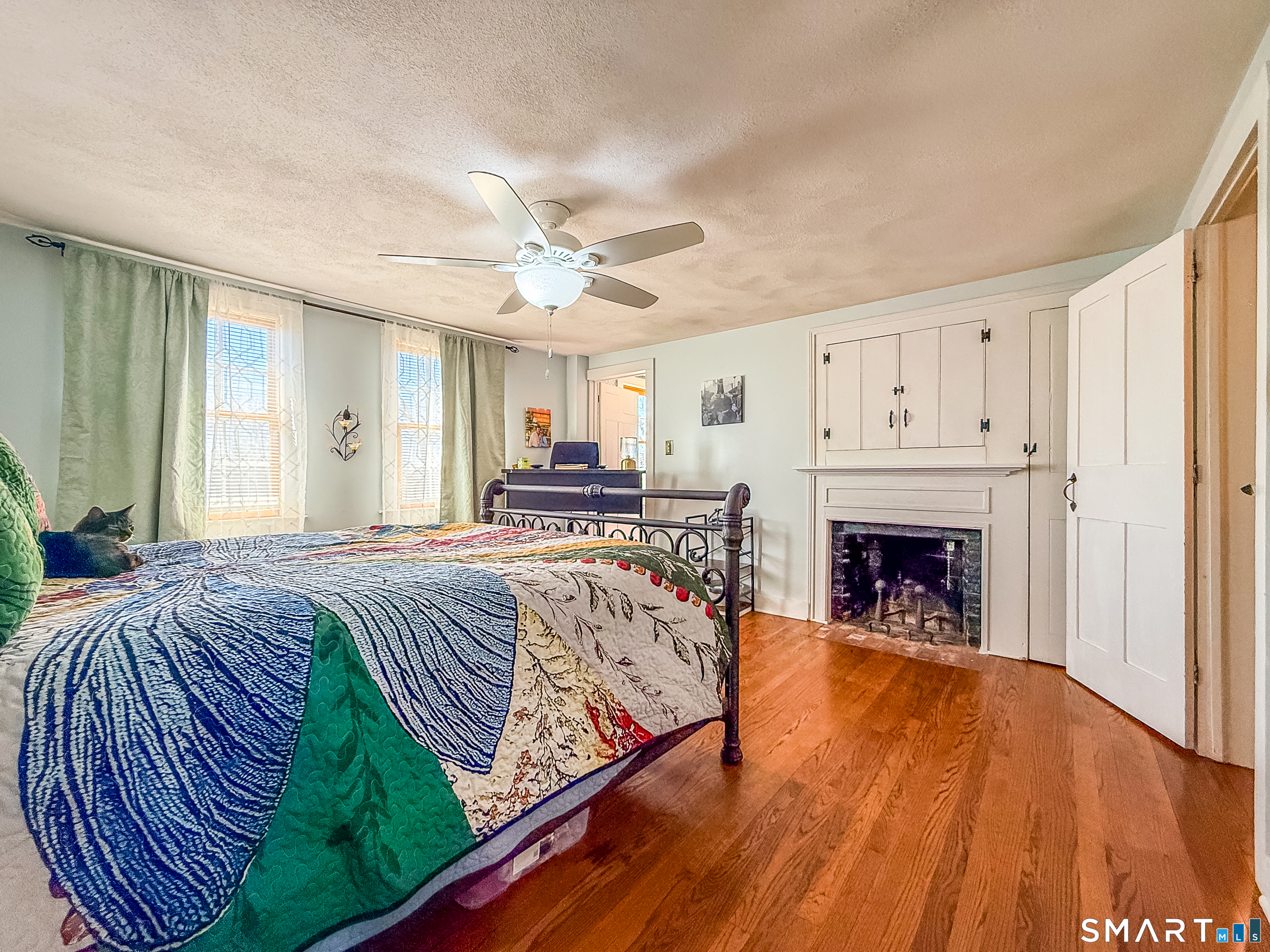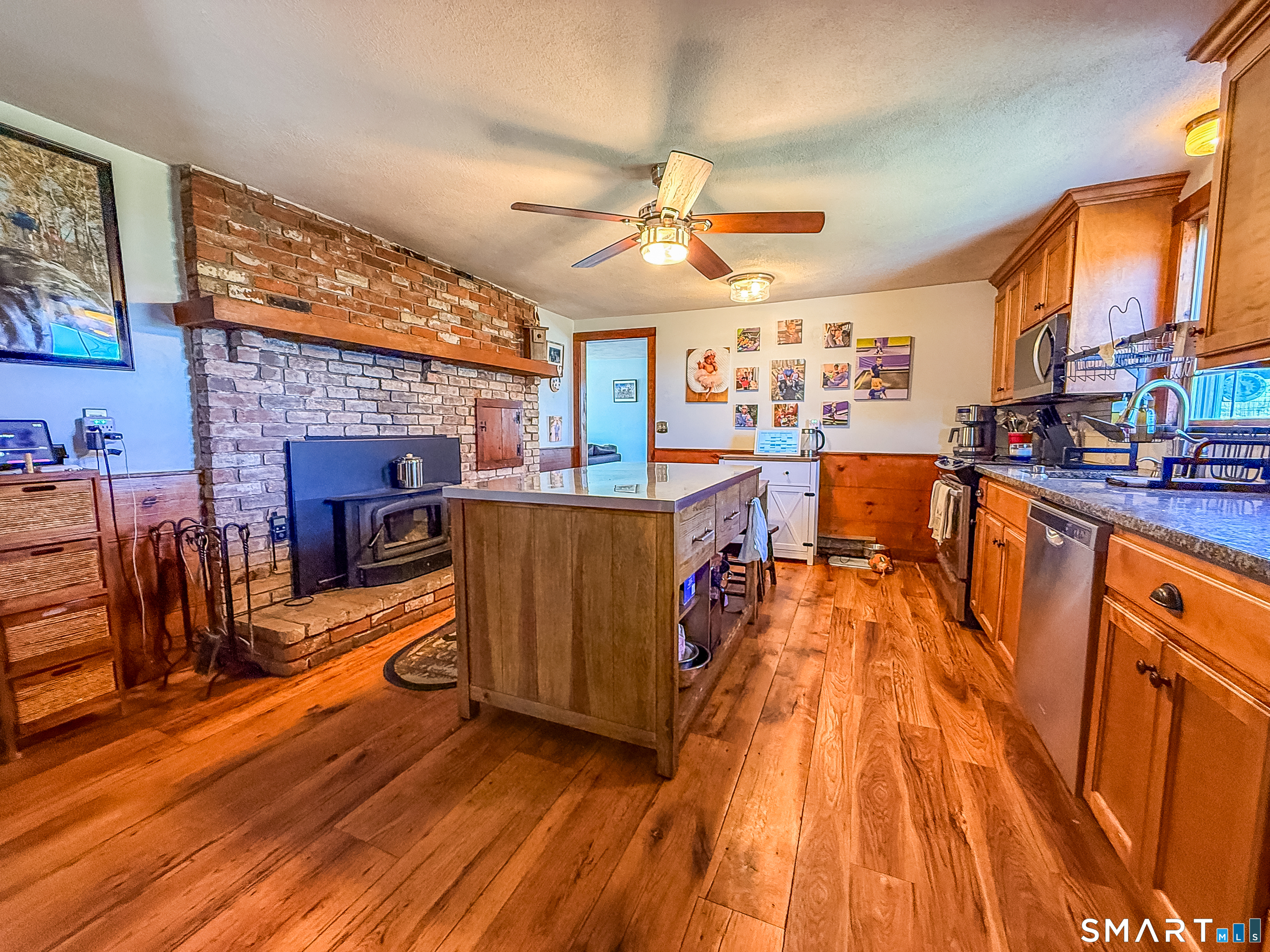 Step into timeless charm with this beautifully maintained 4-bedroom, 2-bath Colonial, full of character you simply can't replicate. From the moment you enter, you'll feel the warmth of classic New England living blended with thoughtful updates for today's lifestyle. This home features 5 fireplaces, including cozy fireplaces in both the master bedroom and second bedroom. Wide-plank wood floors and period details add to the home's authentic charm, while the second staircase offers both functionality and a touch of historic elegance. The kitchen is the heart of the home, complete with a charming wood stove, perfect for gatherings and everyday living. Just off the kitchen, a spacious mudroom with sliders leads to a large deck, ideal for entertaining or enjoying peaceful outdoor moments. Outside continues to impress with its fruit trees and plenty of space to relax, garden, or entertain.